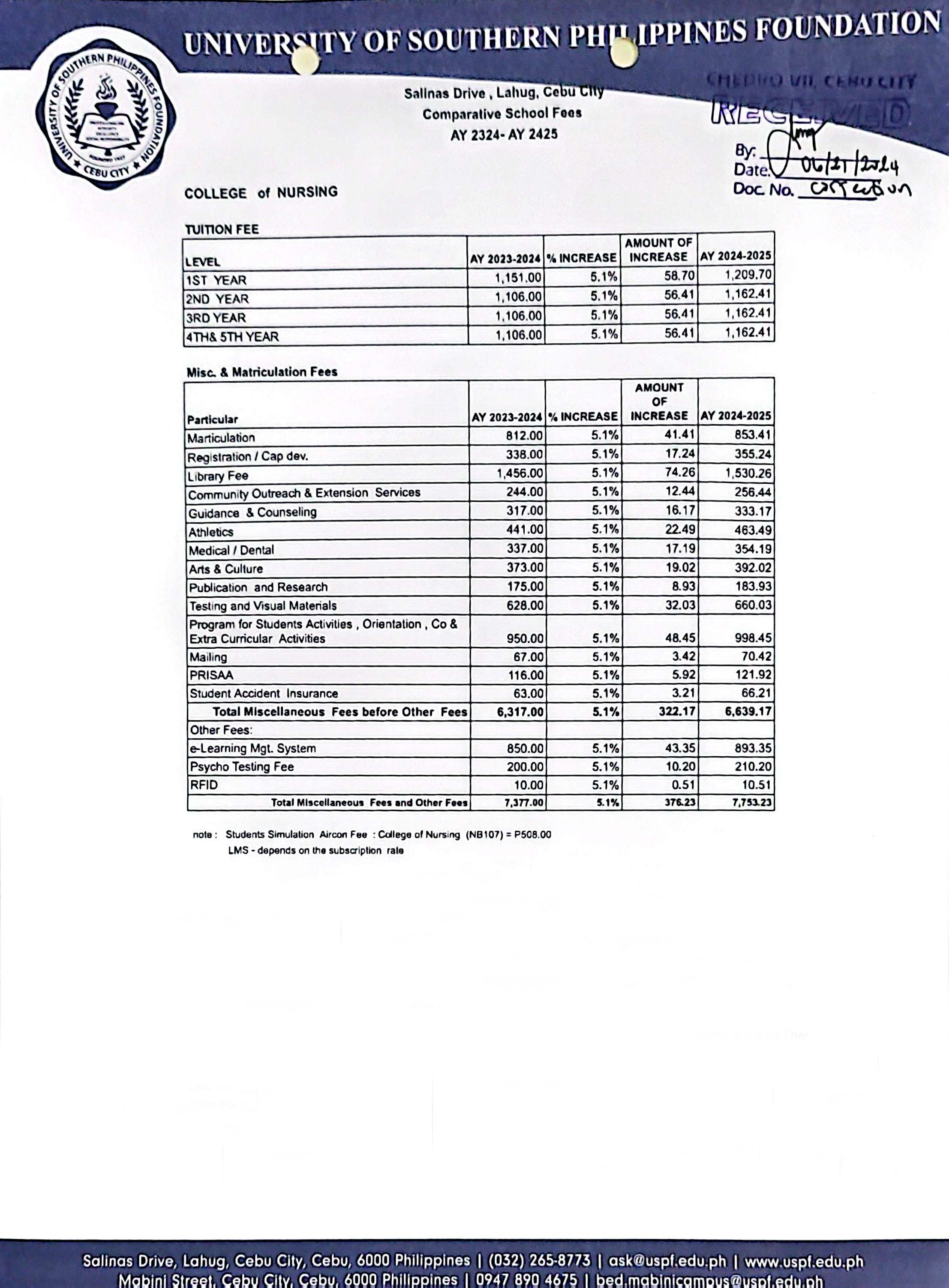 Tuition and Other School Fees (TOSF) for AY 2024 to 2025